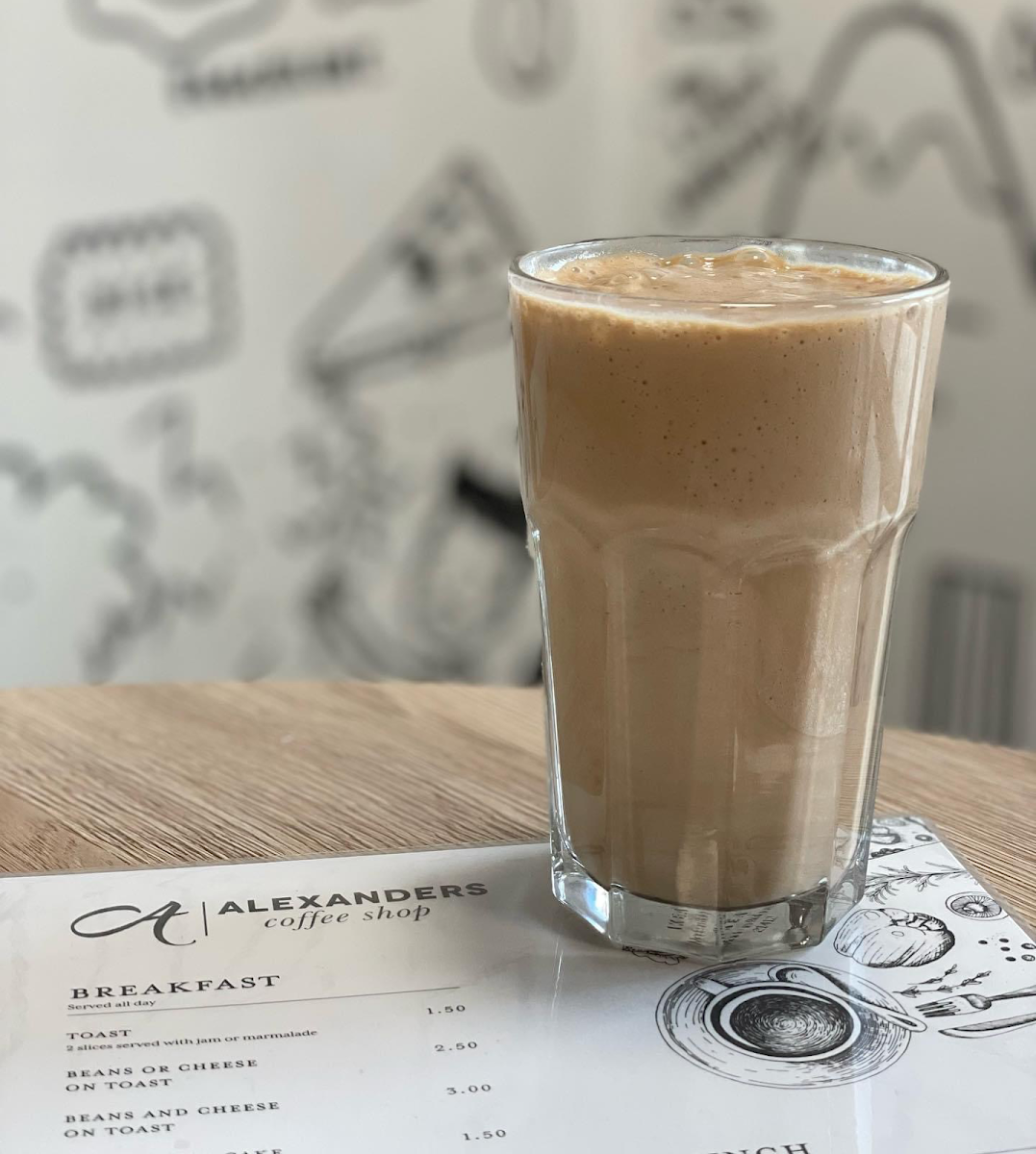 One of the main draws of this coffee shop is its incredible selection of signature dishes, which cater to a variety of tastes. For those with a sweet tooth, the coffee and cake combo is a must-try. Imagine sipping on a perfectly brewed cup of coffee while indulging in a slice of freshly baked cake-it's the ideal way to unwind. Vegan guests will also feel right at home, as Alexanders offers a range of tasty plant-based options. The Vegan Chocolate Milkshake, in particular, is a standout, offering a rich and creamy treat that even non-vegans will love. If you're craving something a little lighter, the Halloumi Salad Box is a refreshing choice, packed with flavor and nutrients. Additionally, fresh fruit smoothies are always a hit, perfect for a healthy and refreshing pick-me-up.
